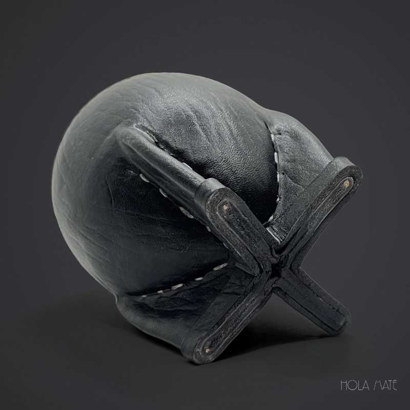 Matière : courge / Extérieur cuir. Calebasse entièrement façonnée à la main, cuir cousu main.